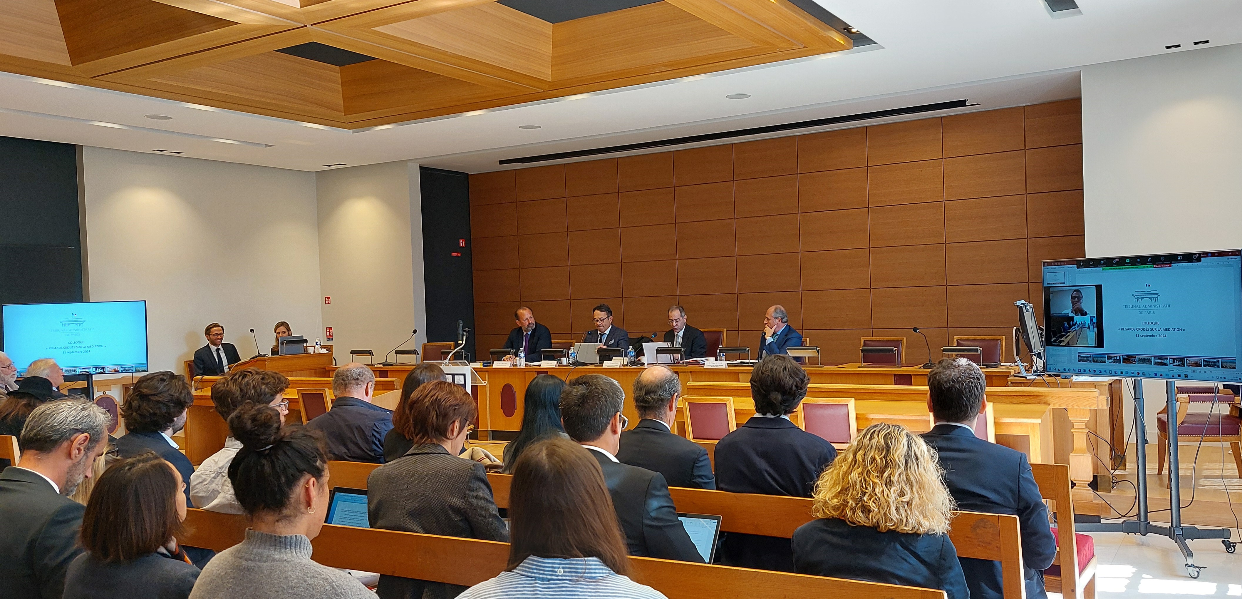 Le 11 septembre 2024, le tribunal administratif a organisé en lien avec le tribunal judiciaire de Paris et l’ordre des avocats au barreau de Paris, un colloque confrontant les pratiques amiables administratives et judiciaires sur la médiation. Ce colloque a rassemblé près de 70 personnes en présentiel dans la salle Marie Lainé du tribunal et près de 170 avocats à distance.contenu